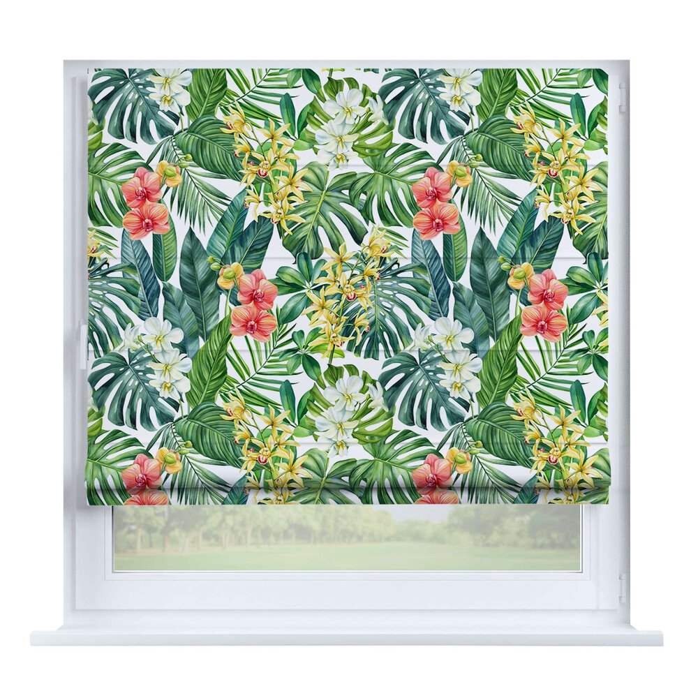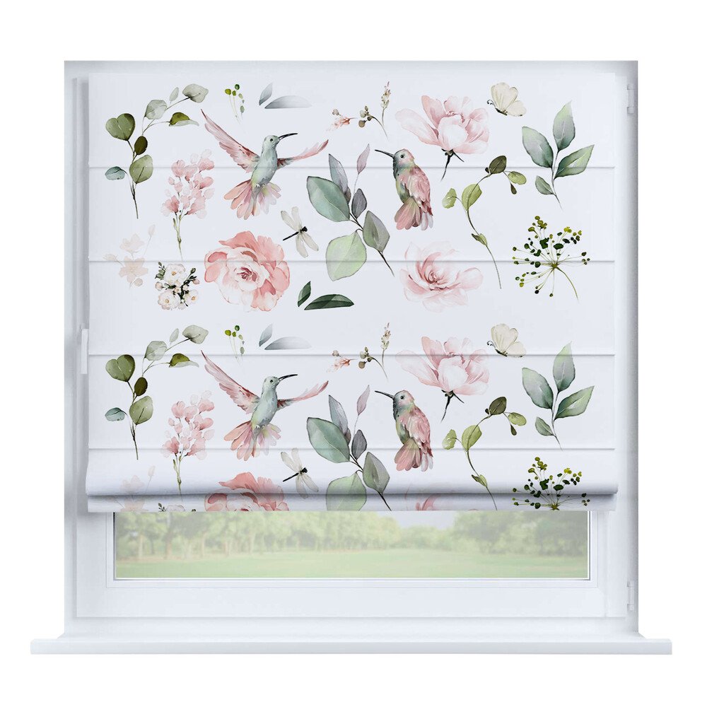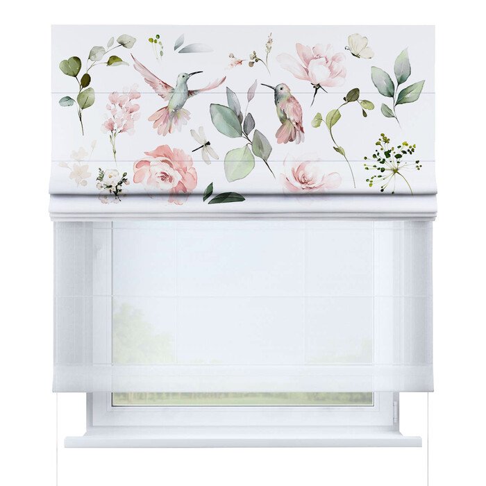 Римская штора день-ночь «Уютный сад», карниз верёвочный