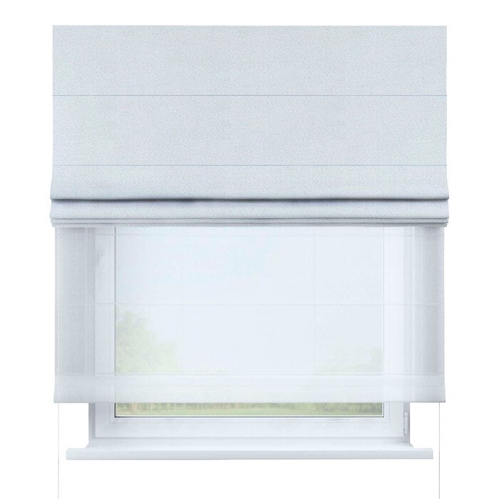 Состоят из двух тканей - основная ткань и тюль, со специальным карнизом с двумя механизмами управления: цепочкой или веревочкой
