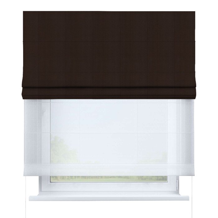 Римская штора день-ночь блэкаут однотонный тёмно-коричневый, карниз верёвочный
