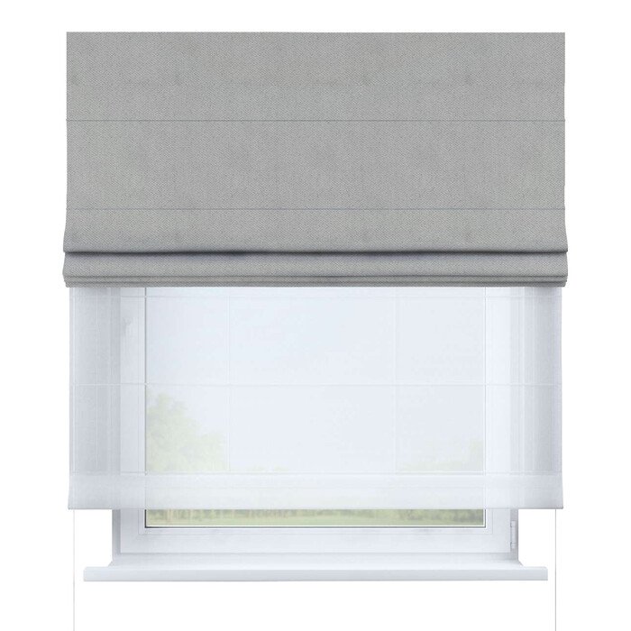 Римская штора день-ночь твид блэкаут светло-серый, карниз верёвочный