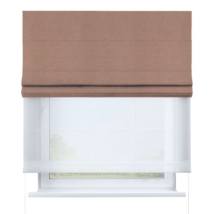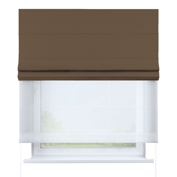 Римская штора день-ночь блэкаут однотонный коричневый, карниз верёвочный